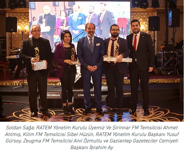 Gece’de Radyo Yayıncılığı Ödülleri’ni Yönetim Kurulu Başkanımız Yusuf Gürsoy takdim etti. 1.’lik ödülünü Şirinnar FM Temsilci ve Yönetim Kurulu Üyemiz Ahmet Atılmış alırken, 2.’lik ödülünü Zeugma FM Temsilcisi Anıl Özmutlu ve 3.’lük ödülünü ise Kilim FM Temsilcisi Sibel Hüzünlü aldı. Kendilerini tebrik ederiz.