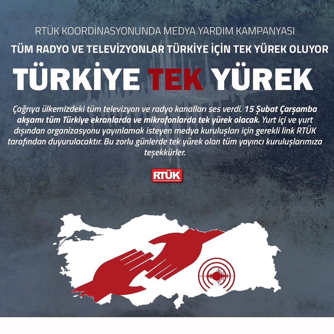 TÜM RADYO VE TELEVİZYONLAR TÜRKİYE İÇİN TEK YÜREK OLUYOR.